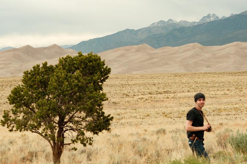 A foreground tree is paired by a photographer in his natural habitat