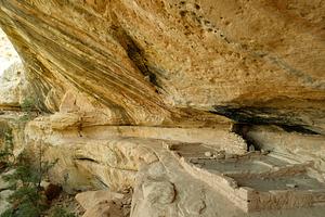 A deep overhang creates natural shelter for ancient cliff dwellings