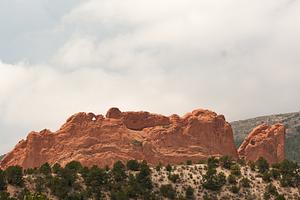 A normal Colorado landscape is surprised by a sudden uprising of orange rocks.